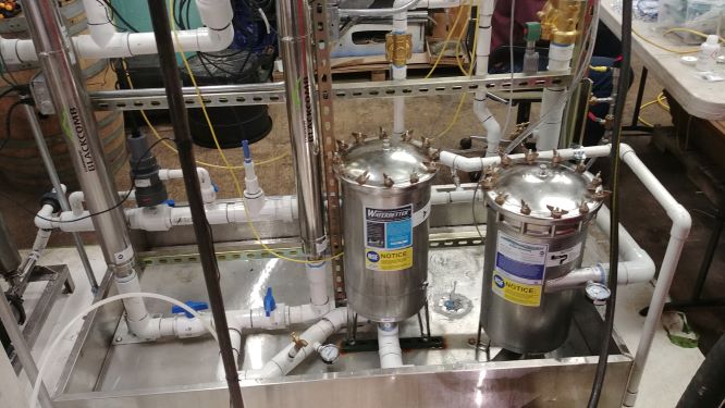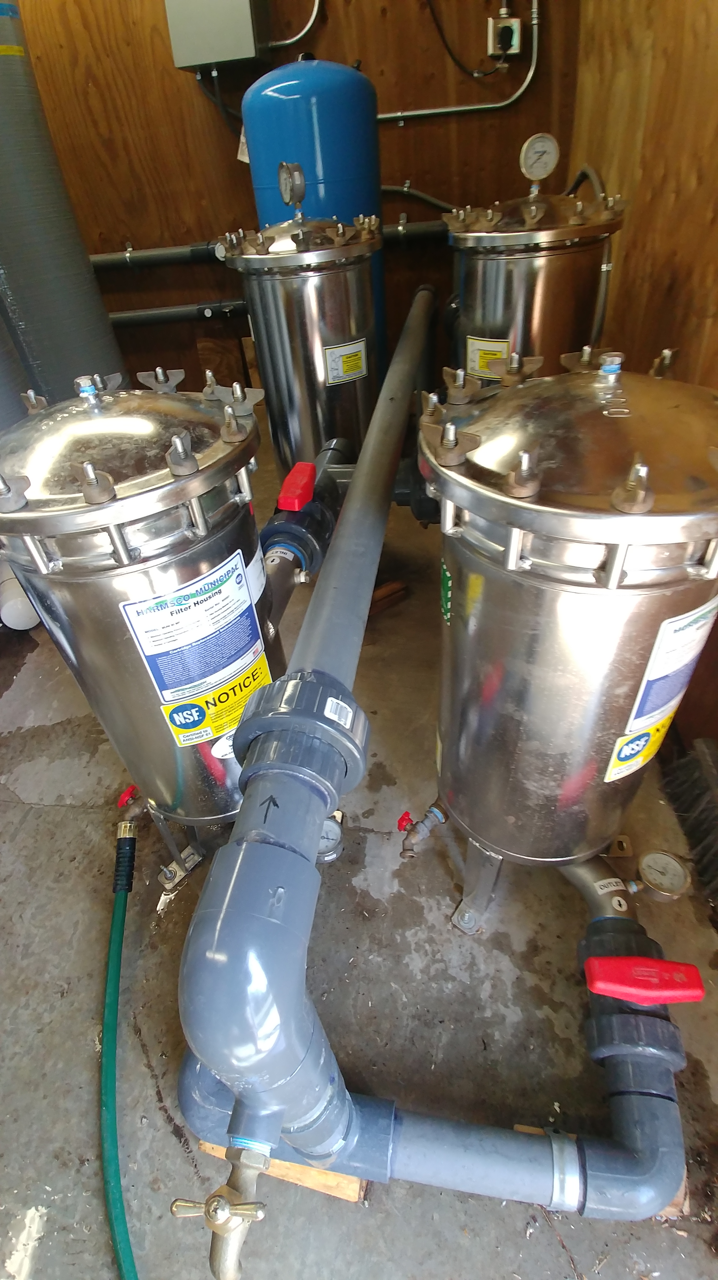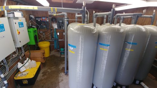Commercial water treatment with chlorine, ultraviolet light, & automation.
