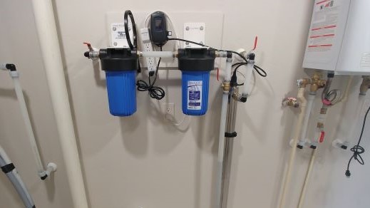 This filter system is equipped with two large capacity filters for iron, sediments, taste & odor.